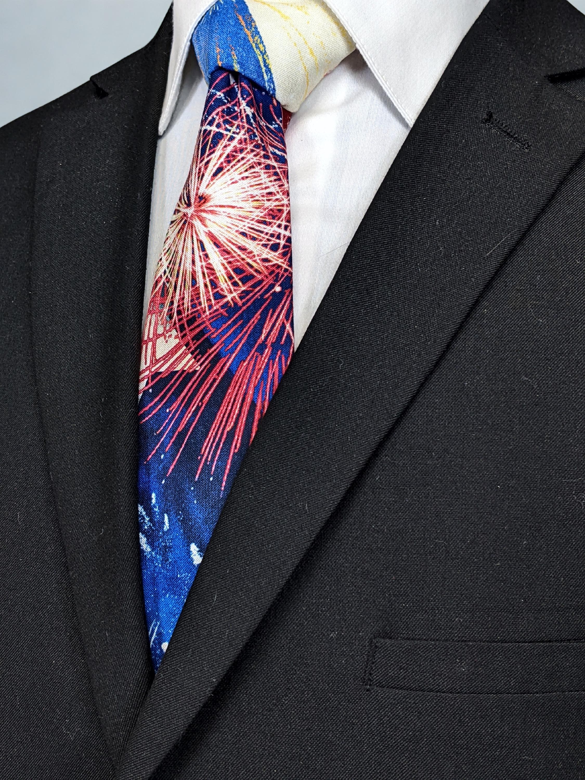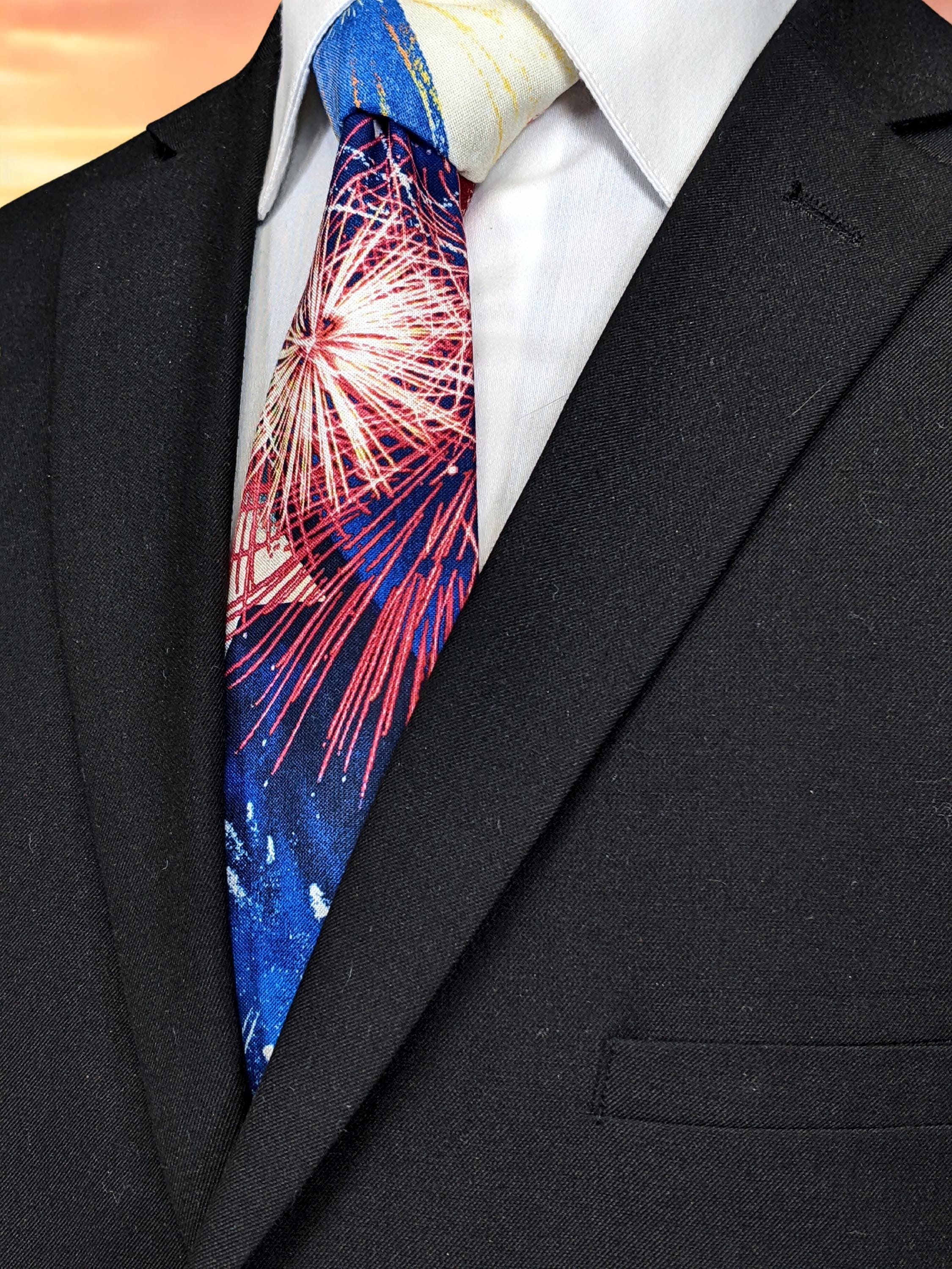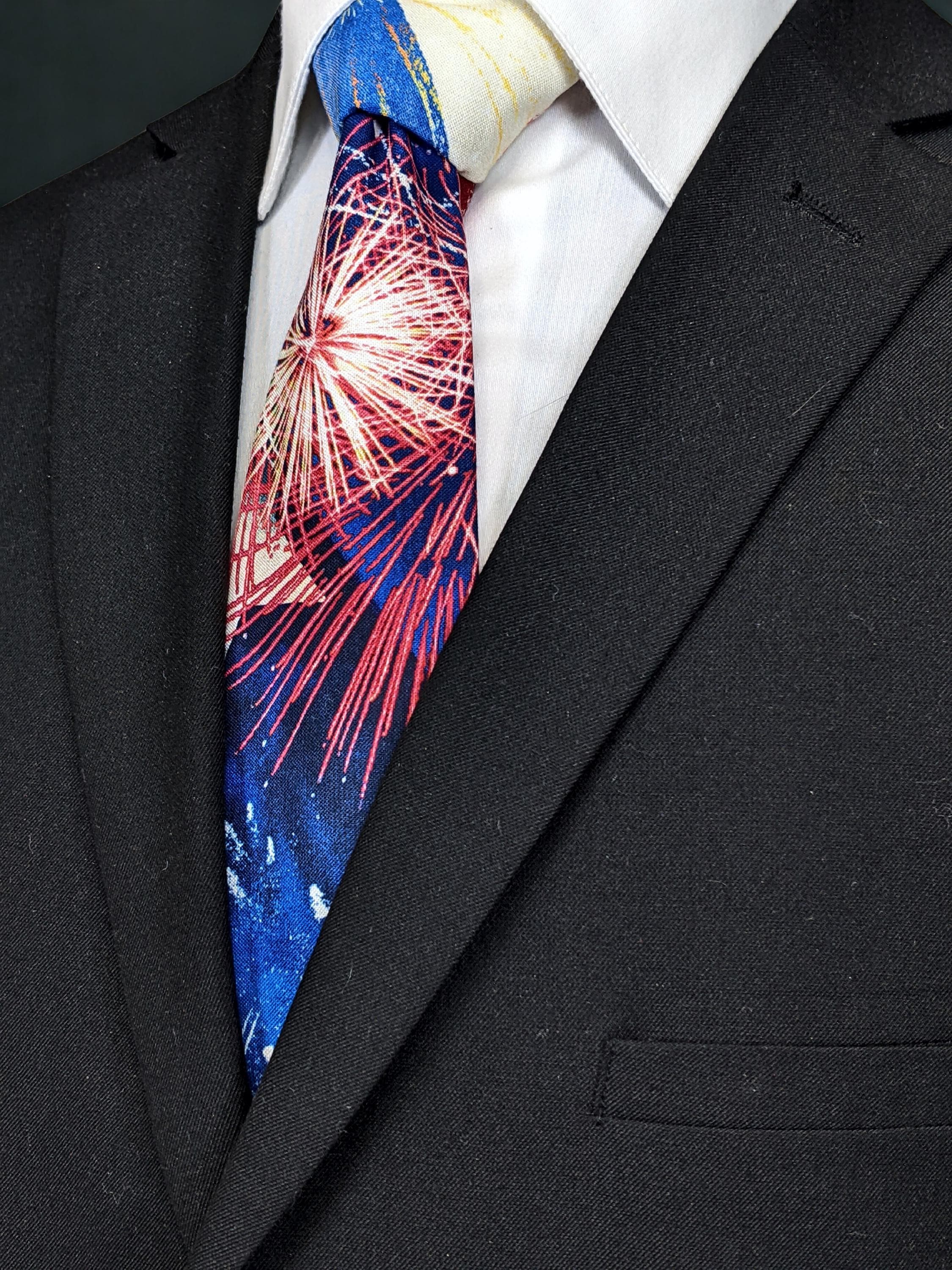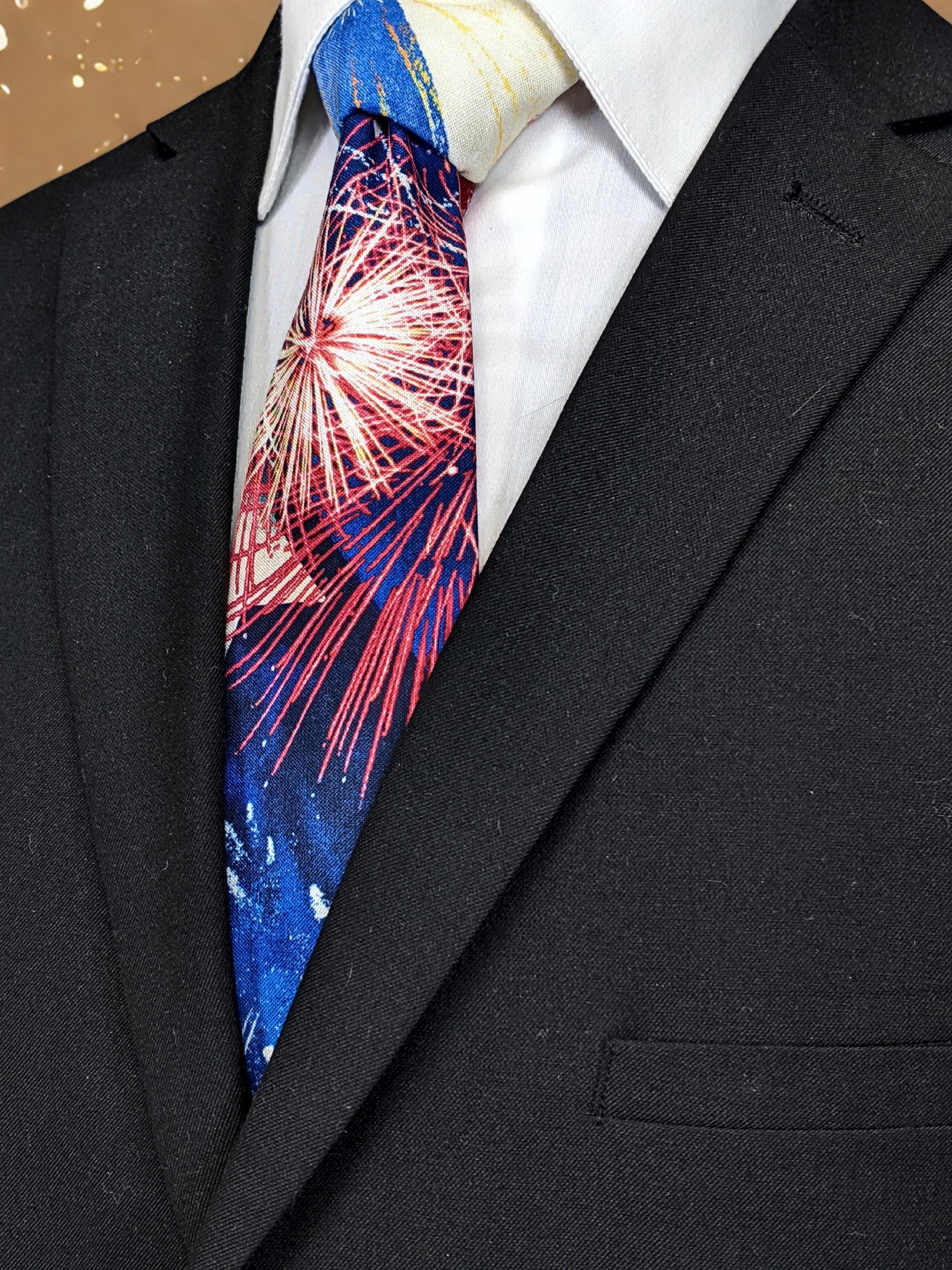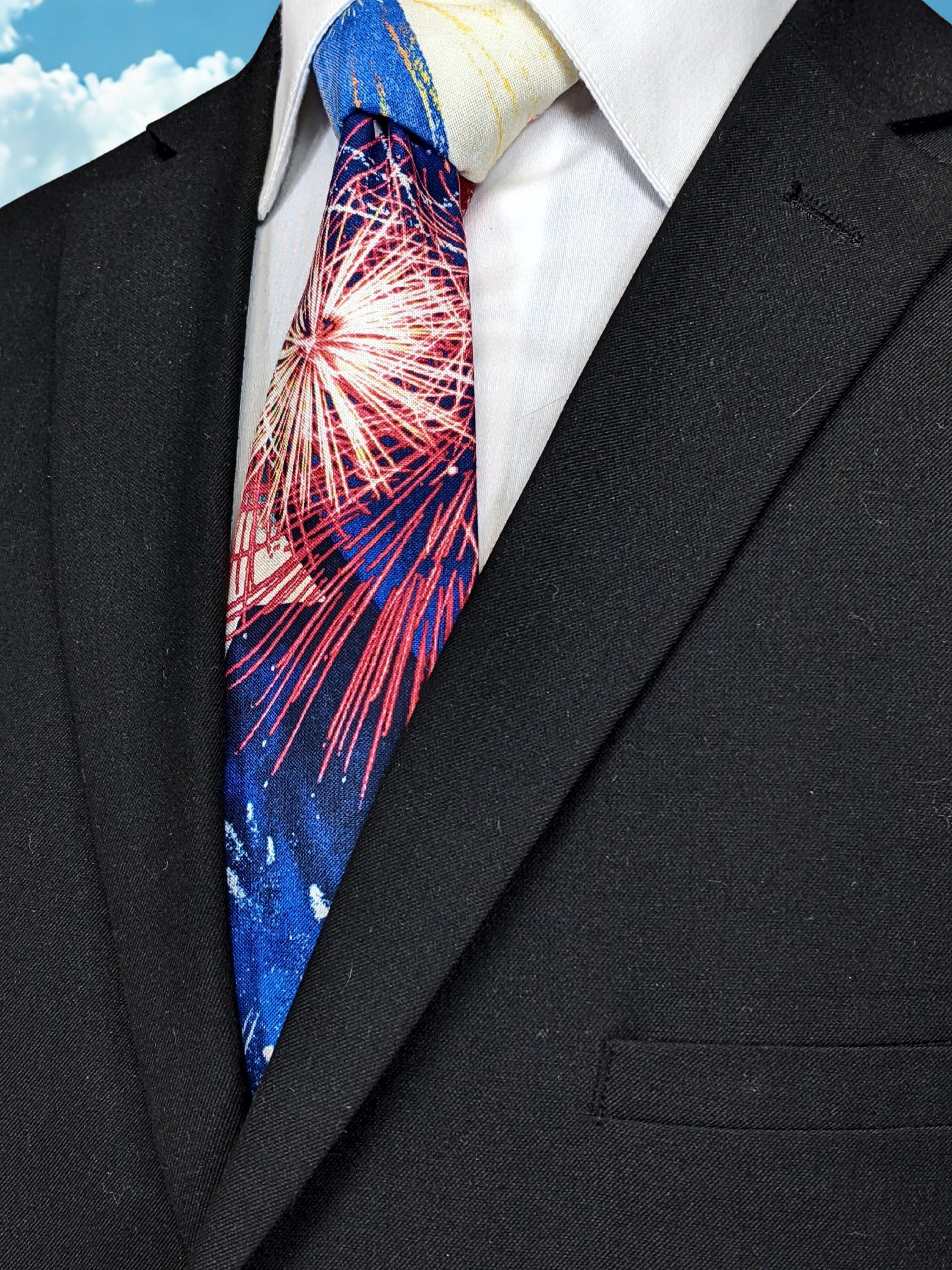 Add a patriotic touch to your outfit with this stunning 4th of July, Independence Day, and New Year's Day red, white, and blue necktie. Made from high-quality 100% cotton, this necktie is not only fashionable but also comfortable to wear.