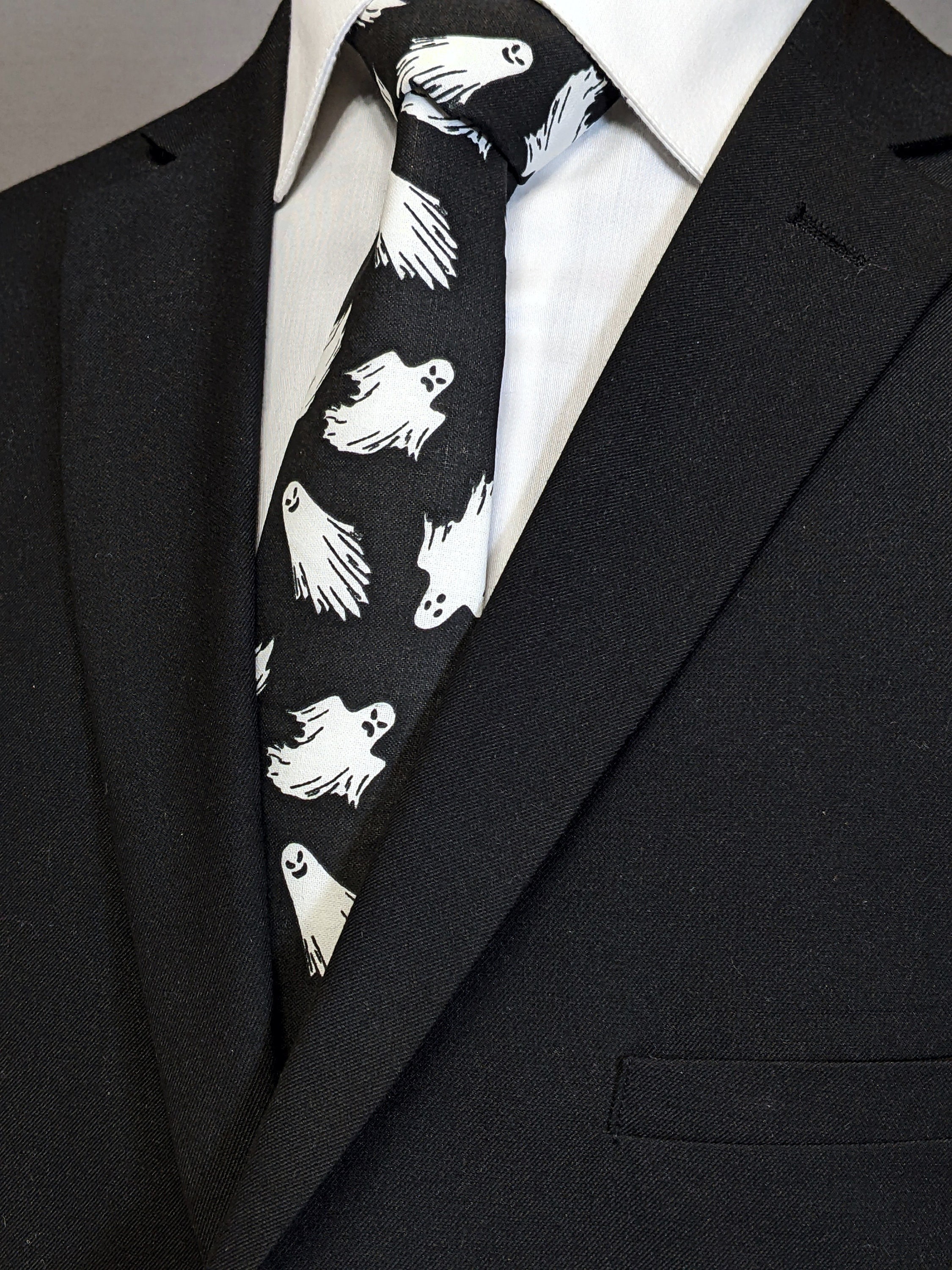 Ghost Necktie – Unveiling the Haunting Elegance of our Halloween Collection.