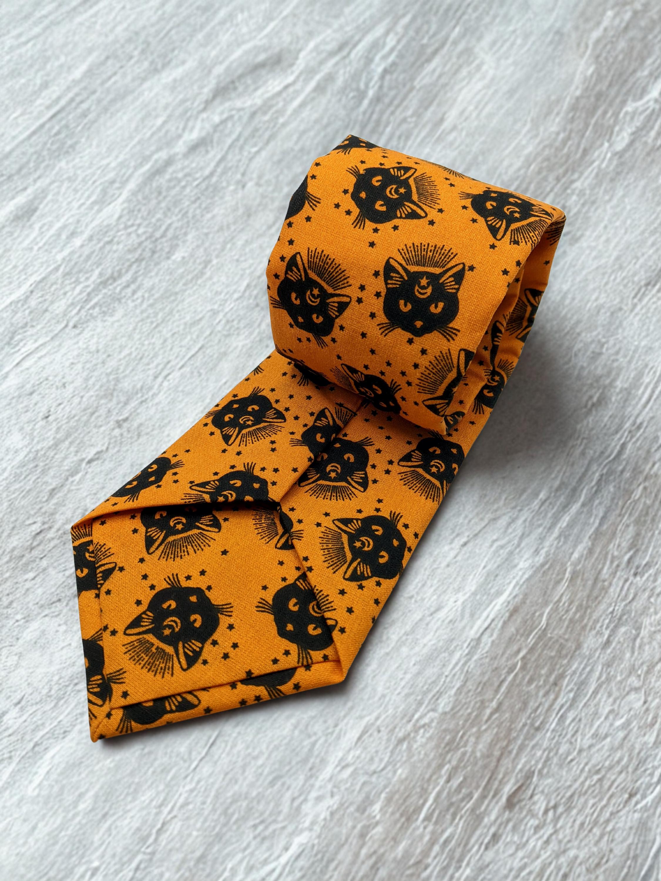 Halloween Cat Necktie - Orange Background, Black Cat Design