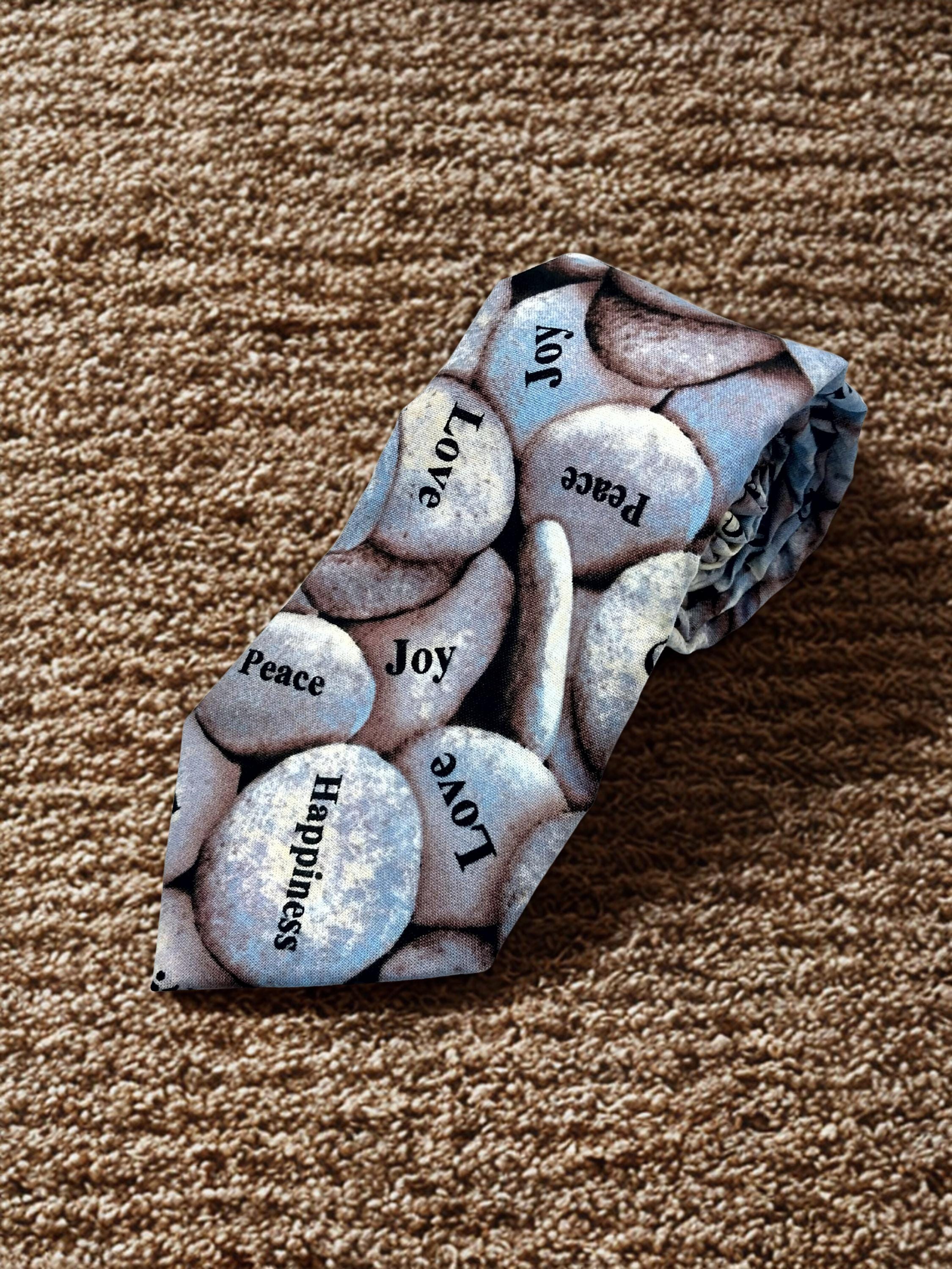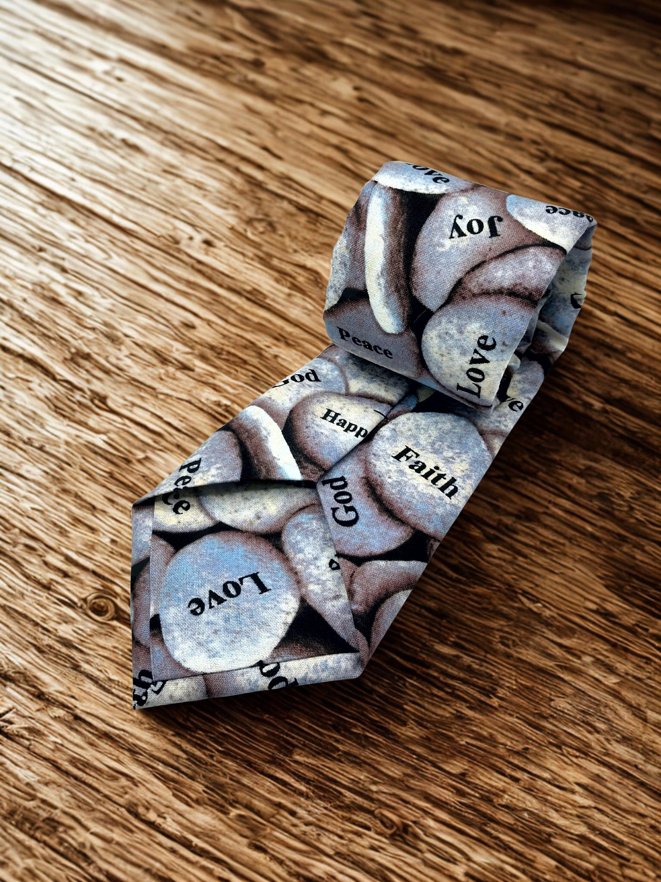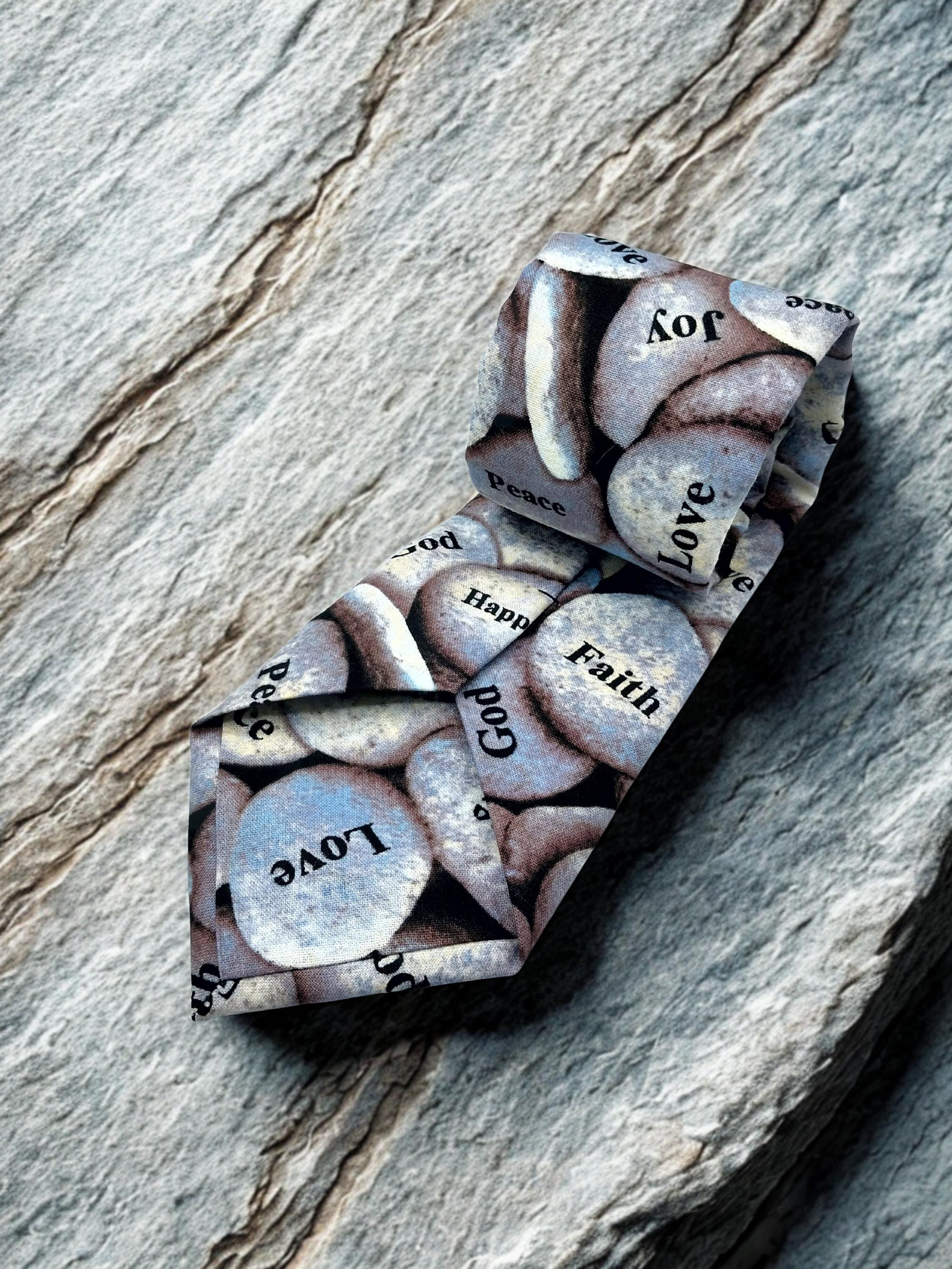 Faith religious Necktie. Perfect for Sunday Mass.. Features an allover rock pattern with sayings.