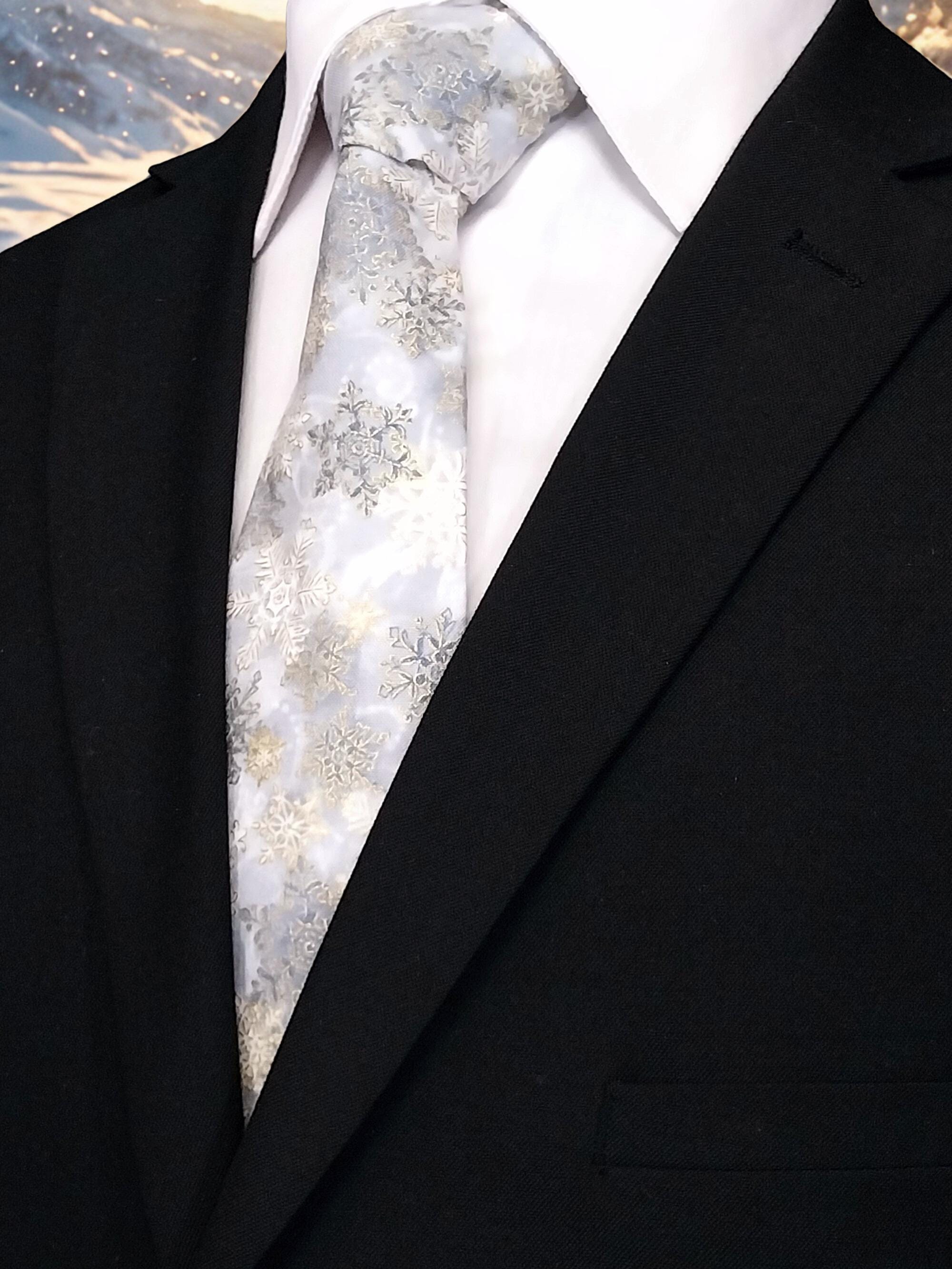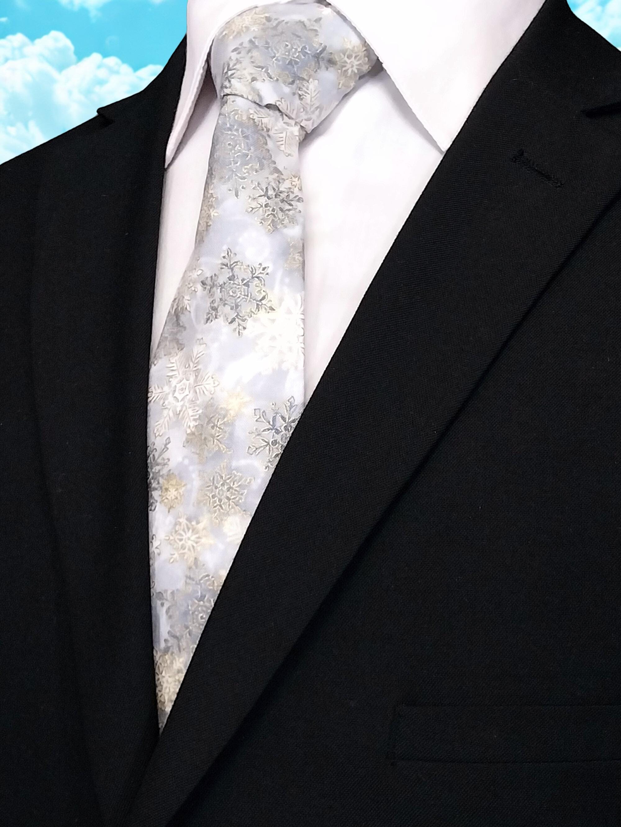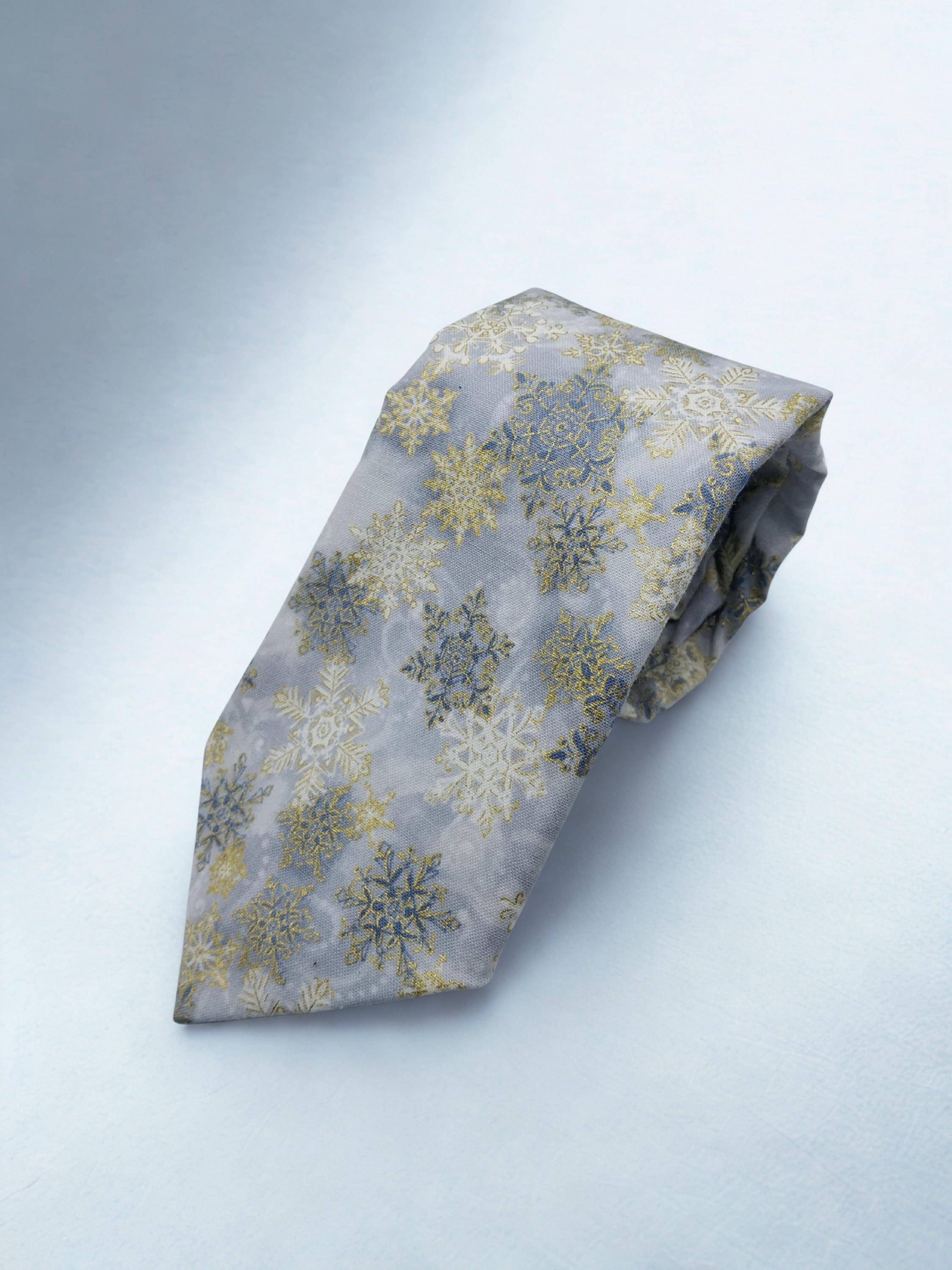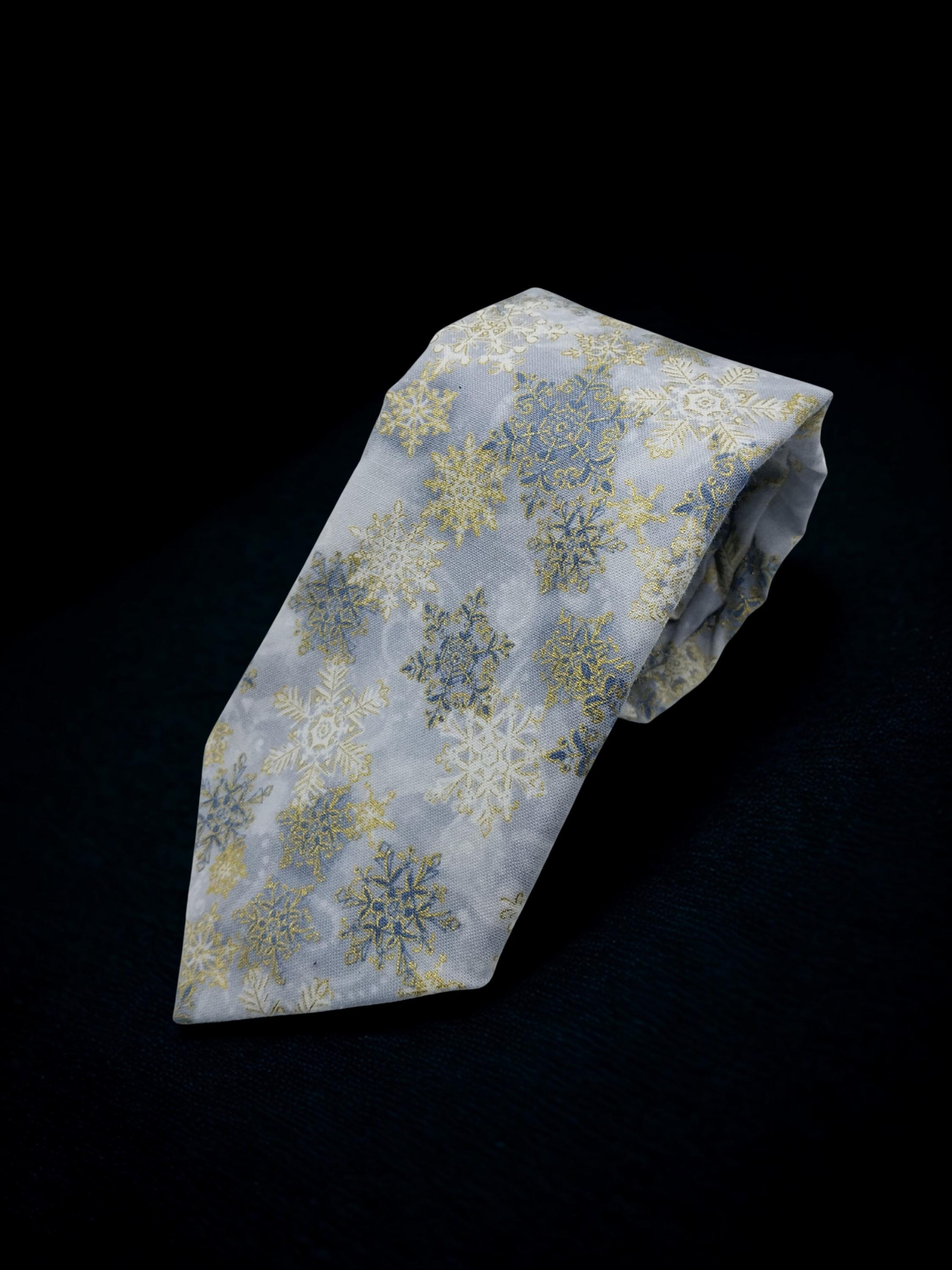 Christmas Snowflake Necktie - Cotton with Metallic Snowflakes Tie