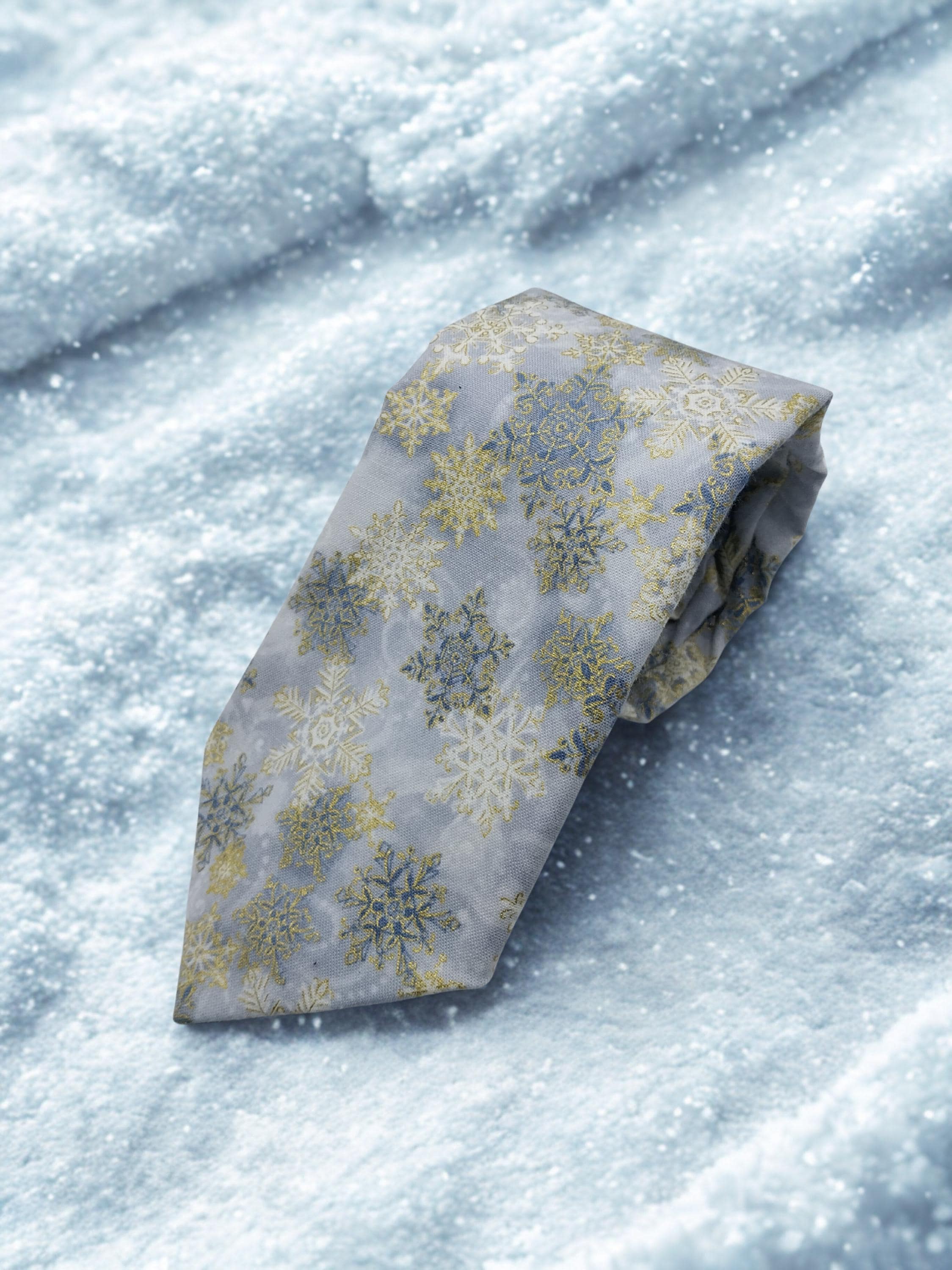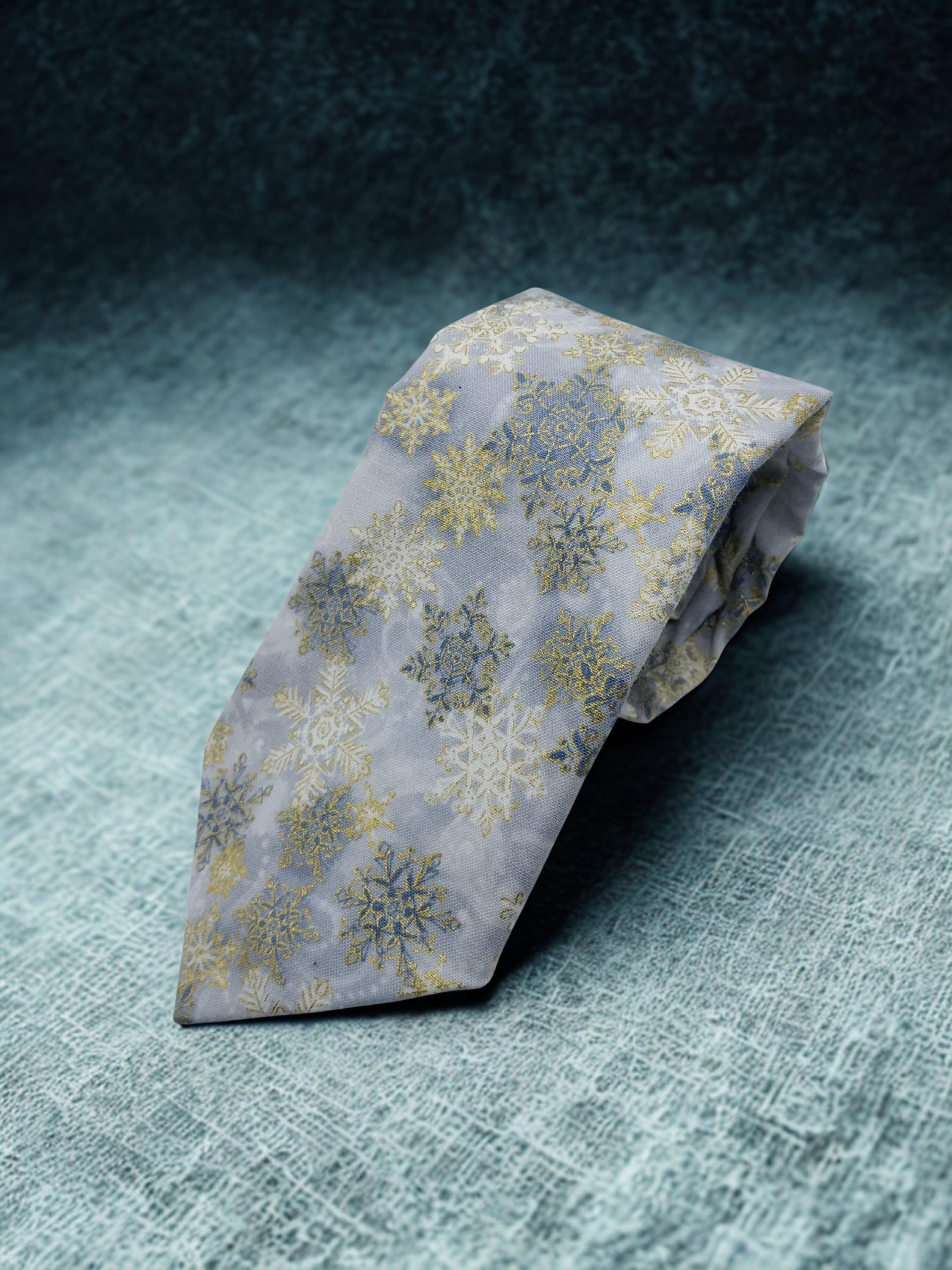 Get into the festive spirit with this Christmas snowflake necktie! Made of cotton with metallic snowflakes, this tie features a stylish gray background adorned with white and dark gray snowflakes. Perfect for adding a touch of holiday cheer to your outfit.