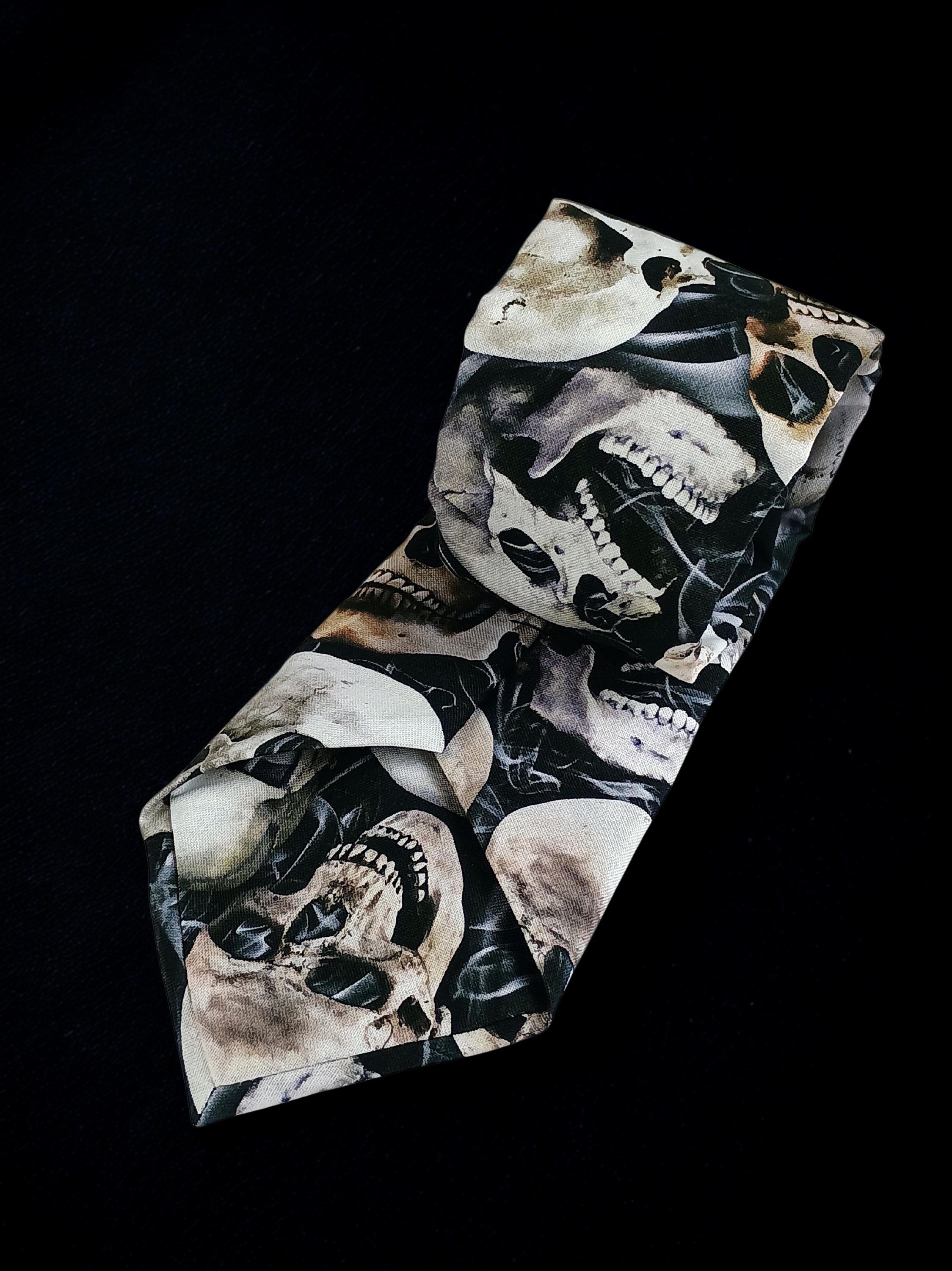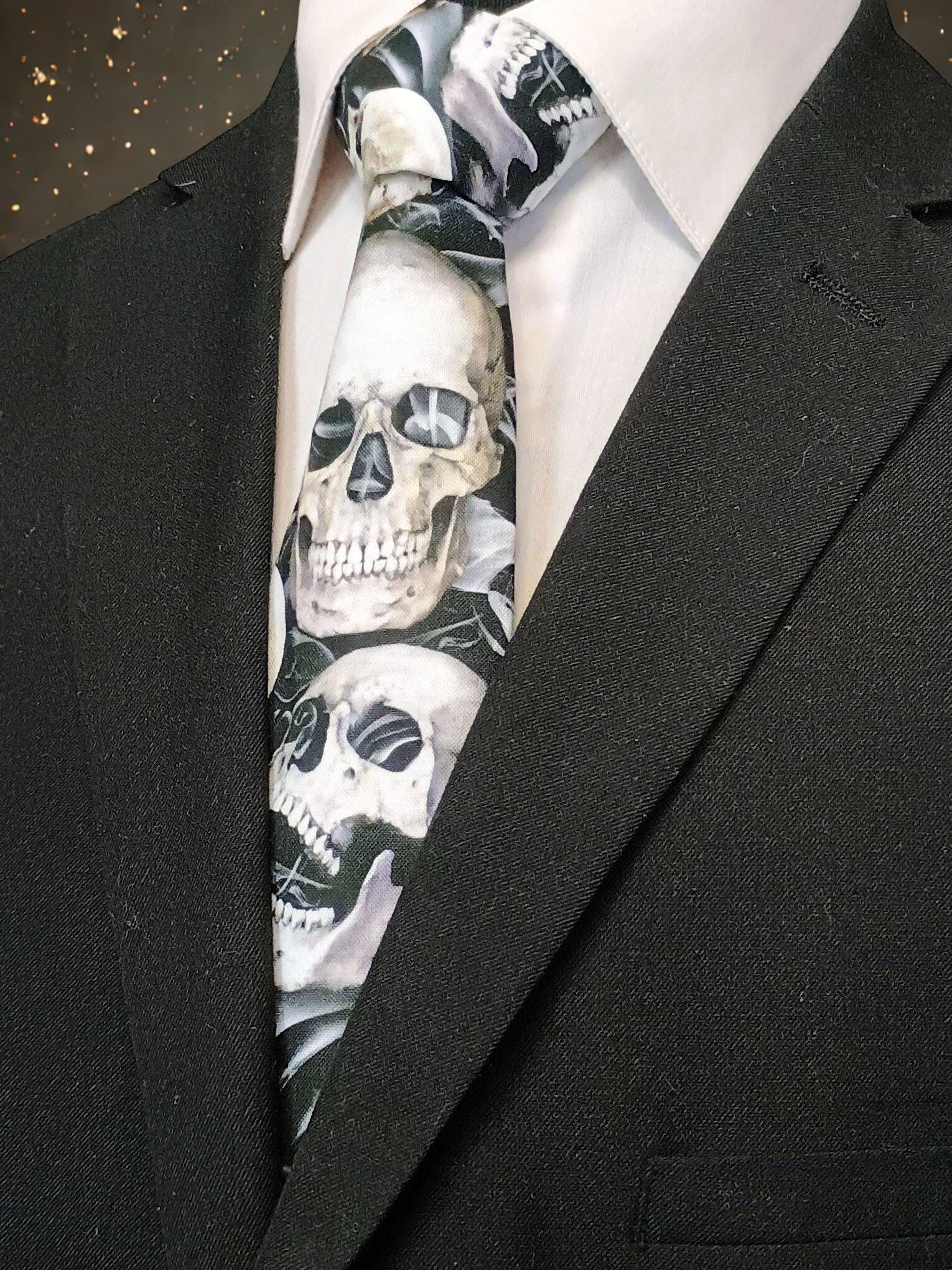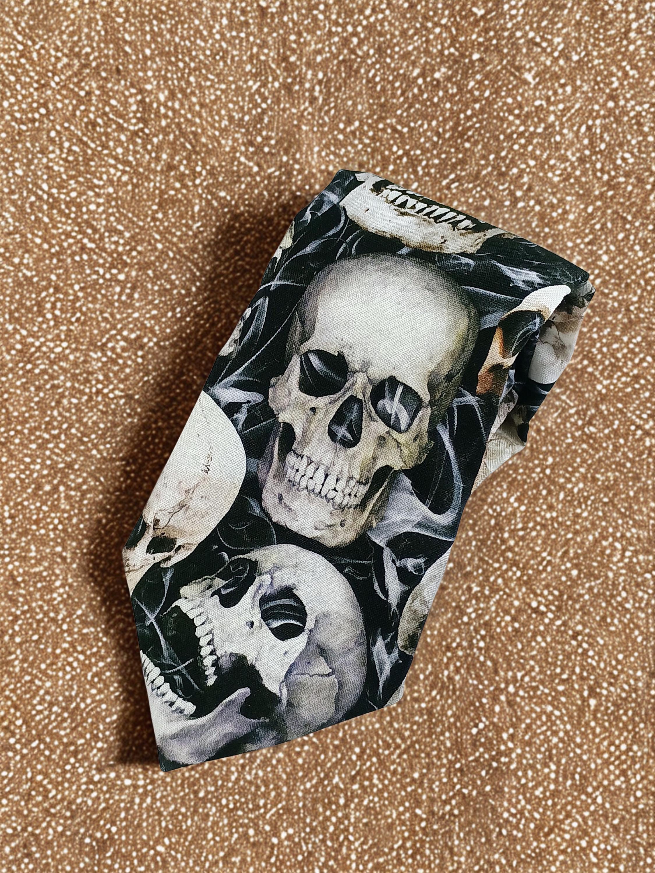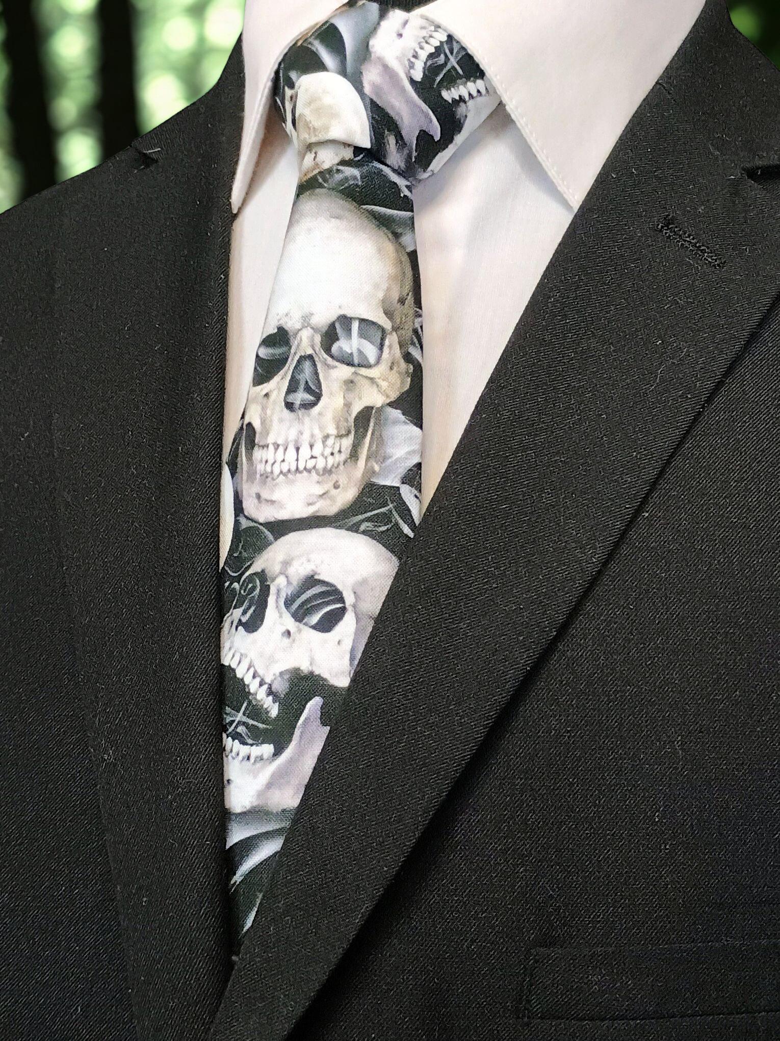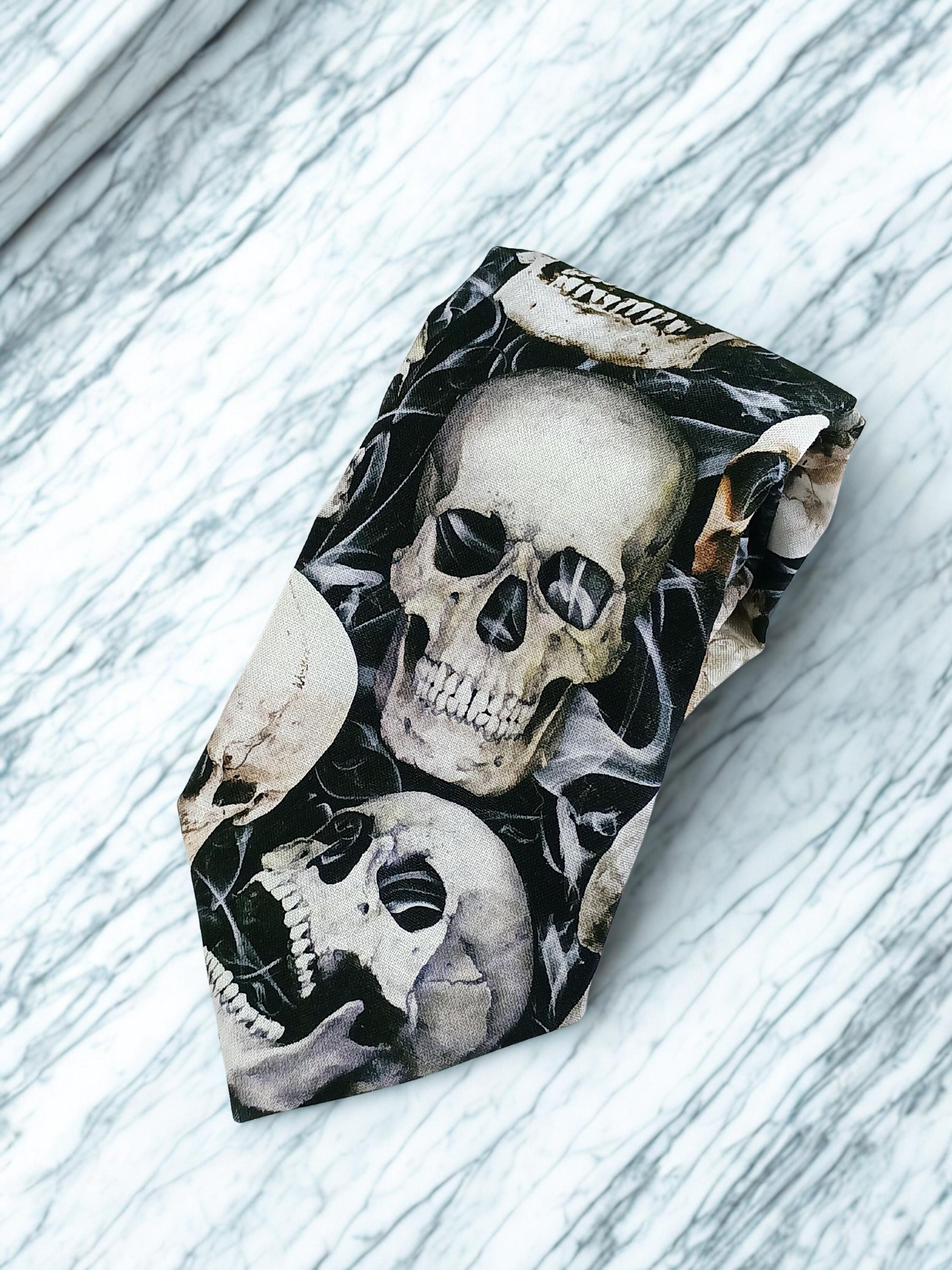 Gothic Skull Necktie: Handmade Cotton Gothic Wedding Accessory
