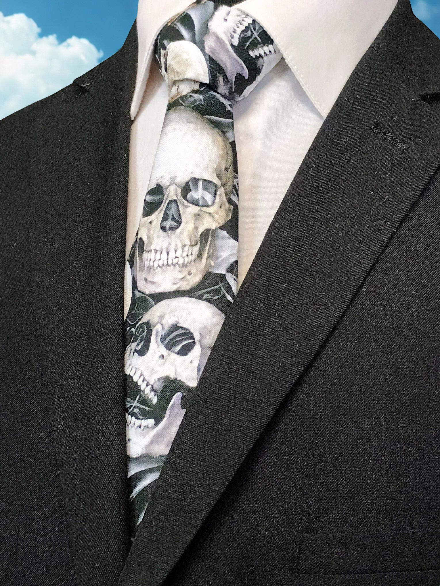 Elevate your style with our **Gothic Skull Necktie**. Crafted from 100% premium cotton, this bold accessory features an intricate skull design on a sleek black background. Perfect for those who embrace edgy fashion, this necktie adds a touch of gothic elegance to any outfit. Whether you're attending a black wedding dress event or just looking to make a statement, this necktie is your go-to choice. Comfortable and breathable, it's ideal for all-day wear.