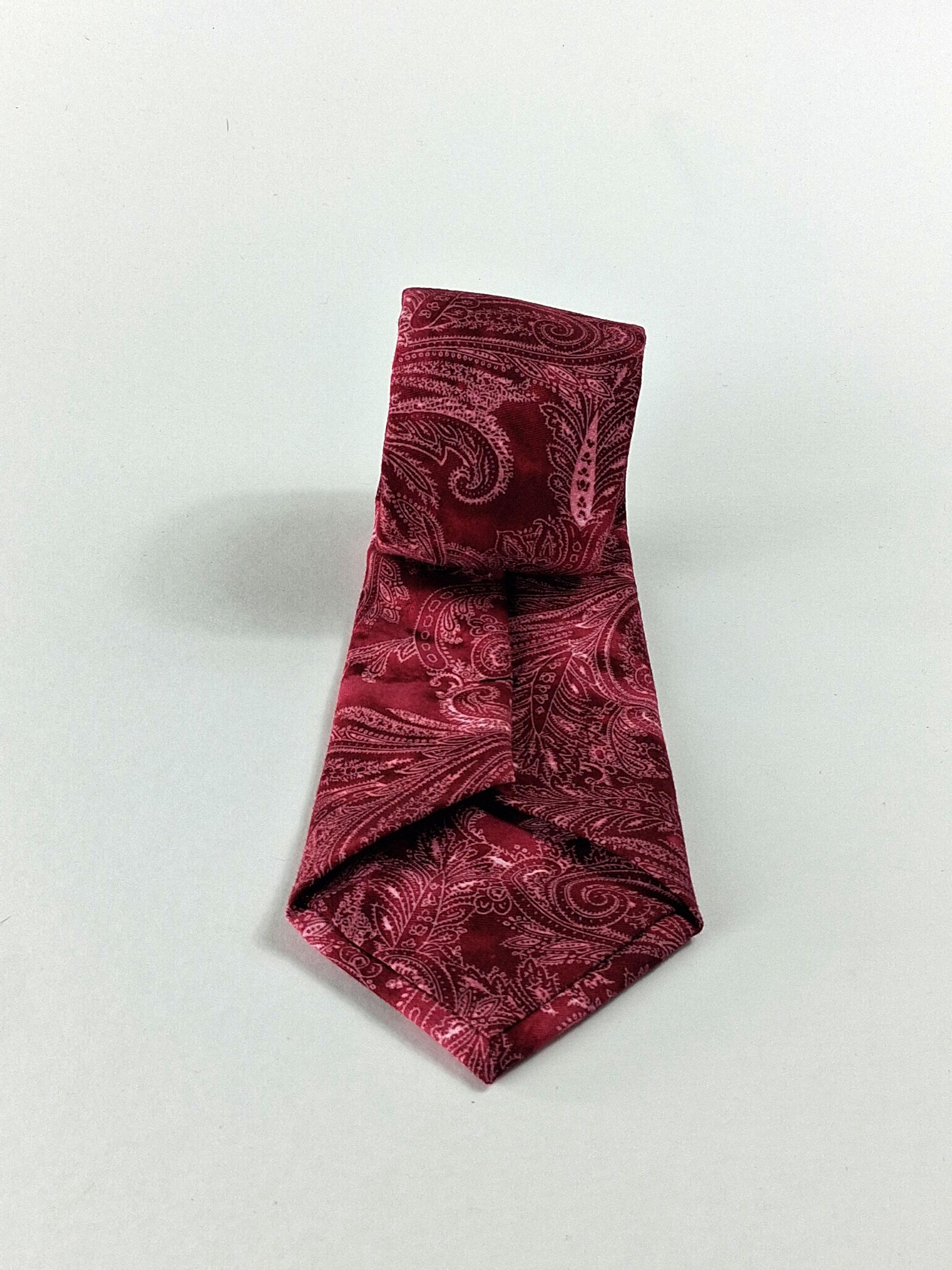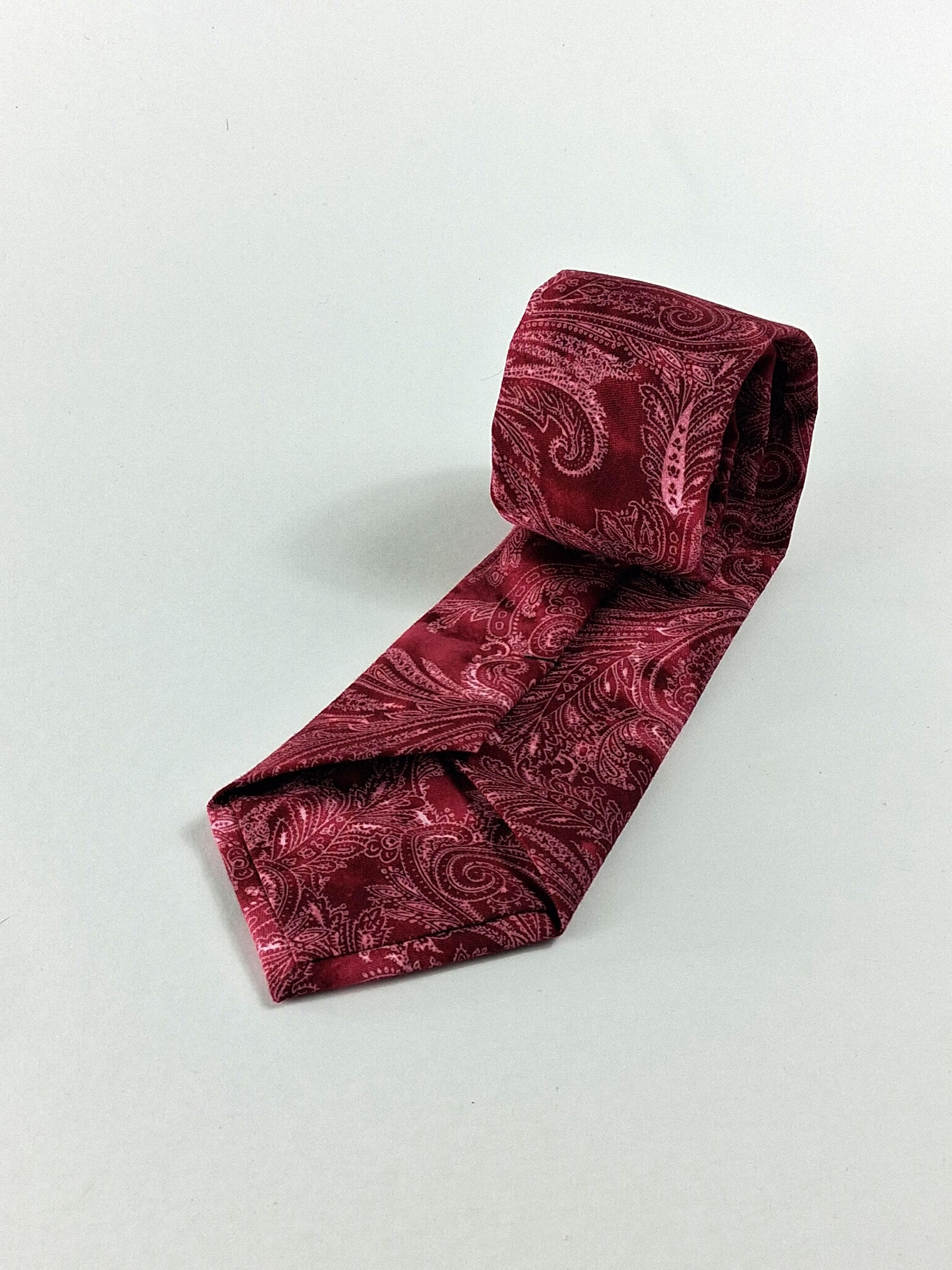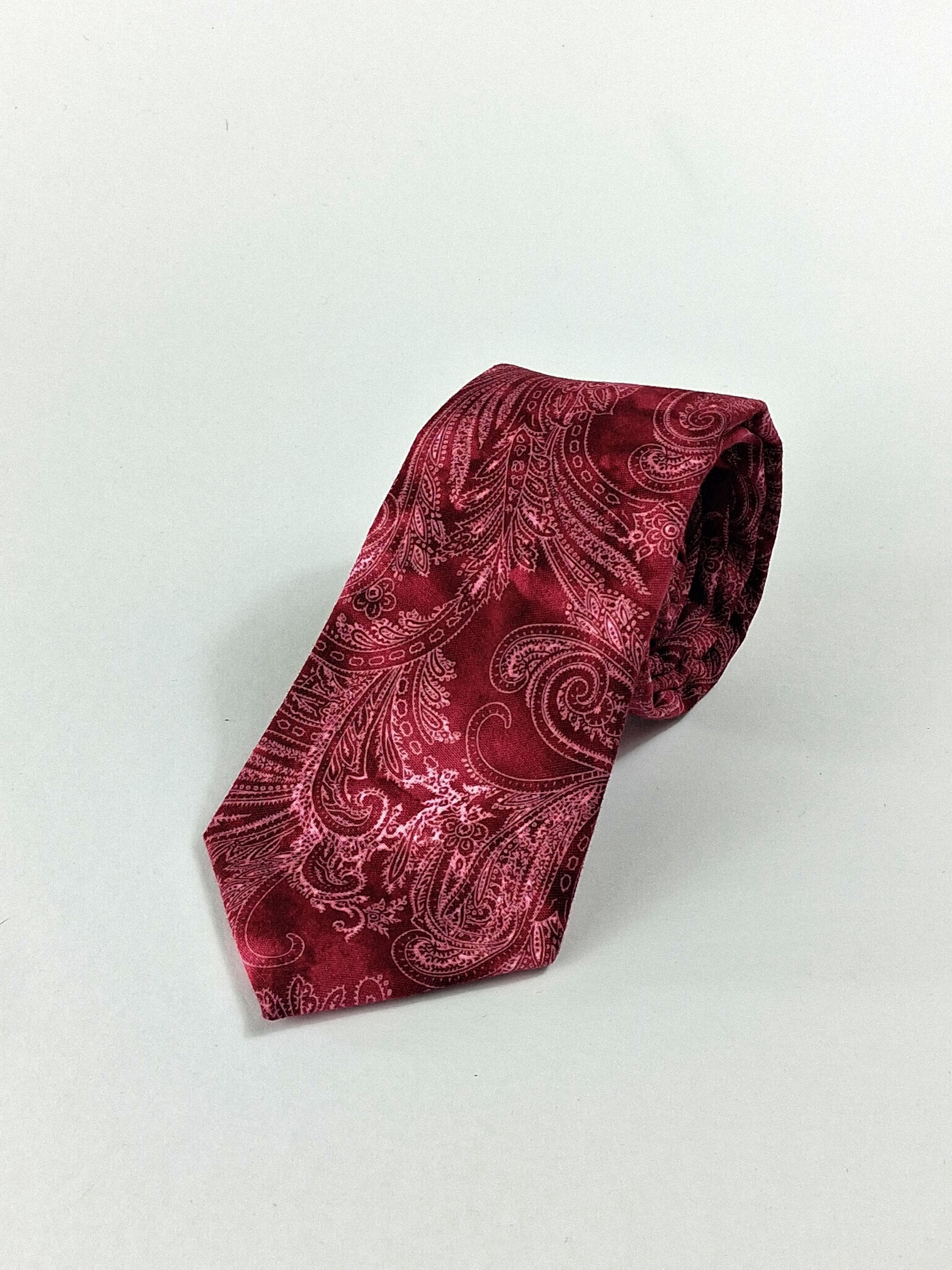 This handmade necktie features a rich burgundy and pink paisley pattern that blends classic elegance with a modern, eye‑catching finish. Crafted from 100% cotton, the fabric has a smooth, soft hand while still holding a crisp, structured knot — perfect for weddings, office wear, or adding a refined pop of color to any outfit.