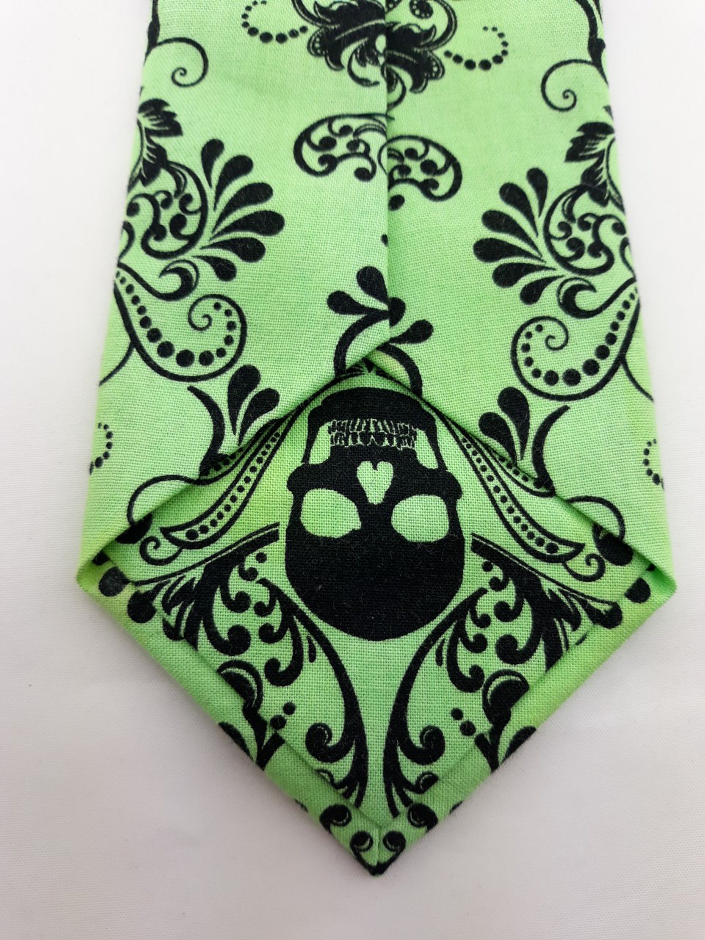 Lime Green Skull Tie – Lime Green Gothic Necktie