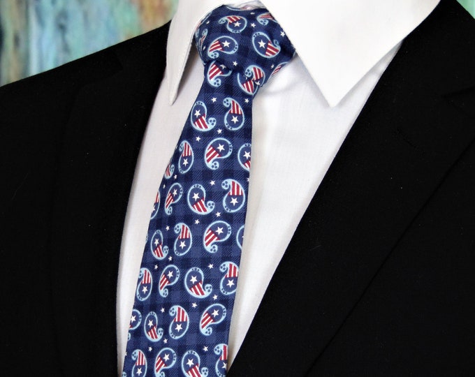 4th of July Ties – Mens Red White and Blue Paisley Independence Day Tie.